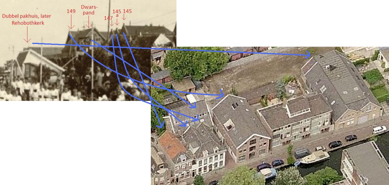 nokken is korter, komt overeen met de huidige situatie. Daarachter een beduidend langer pand, nu nr 149.