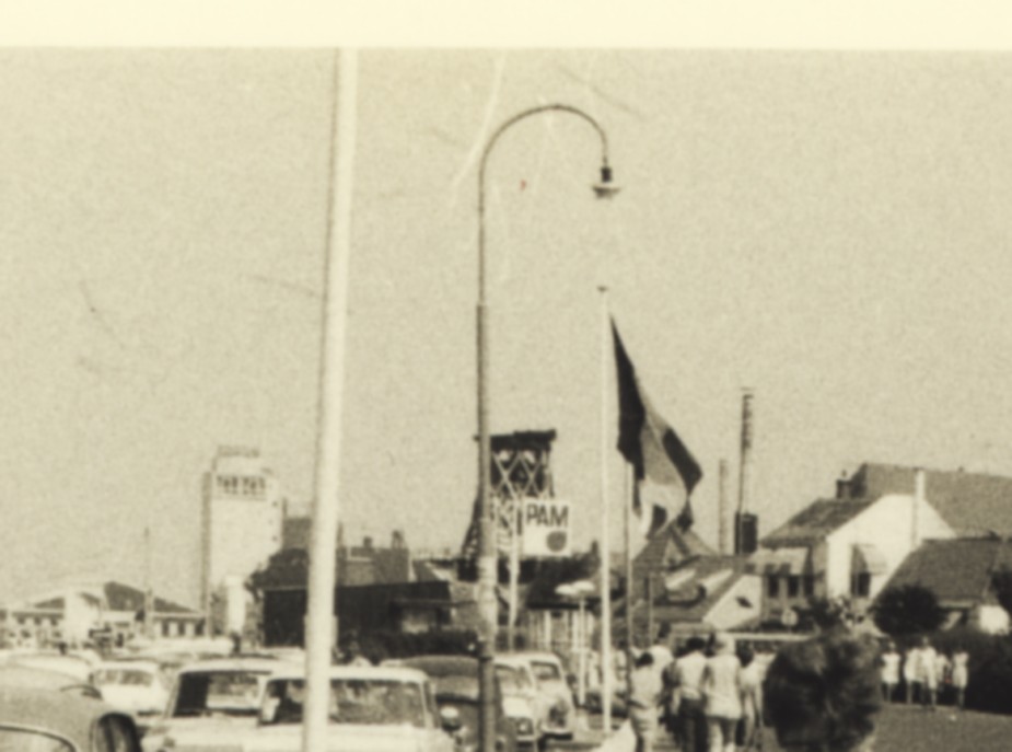 Op de achtergrond staat inderdaad een molenskelet. De molen van Harderwijk brandde namelijk uit in de nacht van 28 op 29 maart 1969. Later werden de resten afgebroken. De foto is dus gemaakt in (of kort na) 1969.