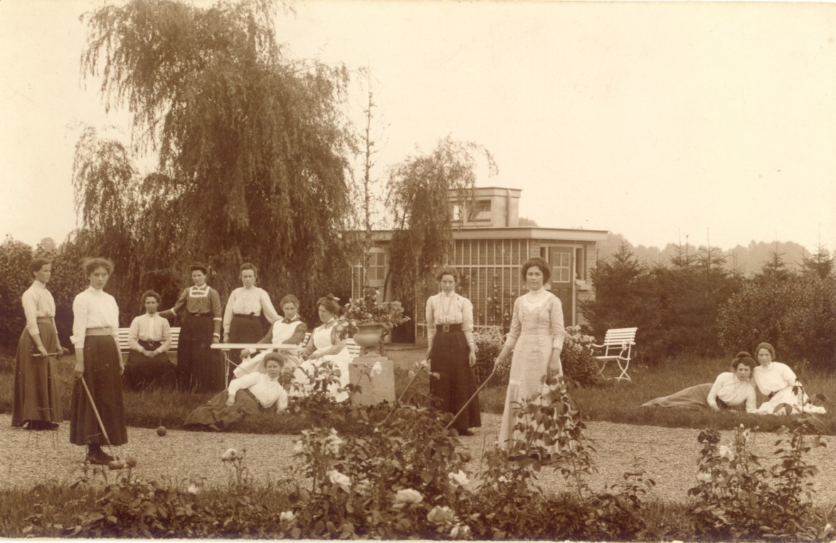 Heel toevallig kwam ik bij het sorteren van aan ons beschikbaar gestelde foto's deze foto tegen van de lighallen van het Dagsanatorium aan het Spijkerpad in Deventer. Waarschijnlijk de oplossing voor dit zoekplaatje. Op de plaats van de lighallen is nu de wijk Tuindorp. De dames met schort zijn dus verpleegsters.