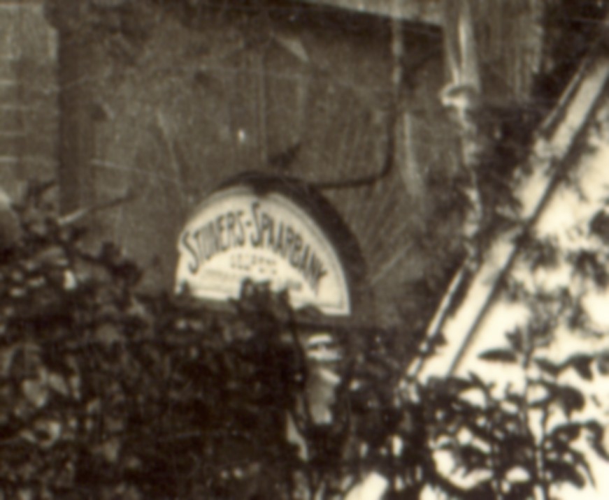 recht onder haar op de begane grond is een halfrond bord te zien met daarop: STUIVERS SPAARBANK geopend ...