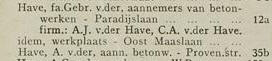 Gebr. van der Have, aannemer van betonwerken en handelaar in riolen en kolken, ging in 1932 failliet.