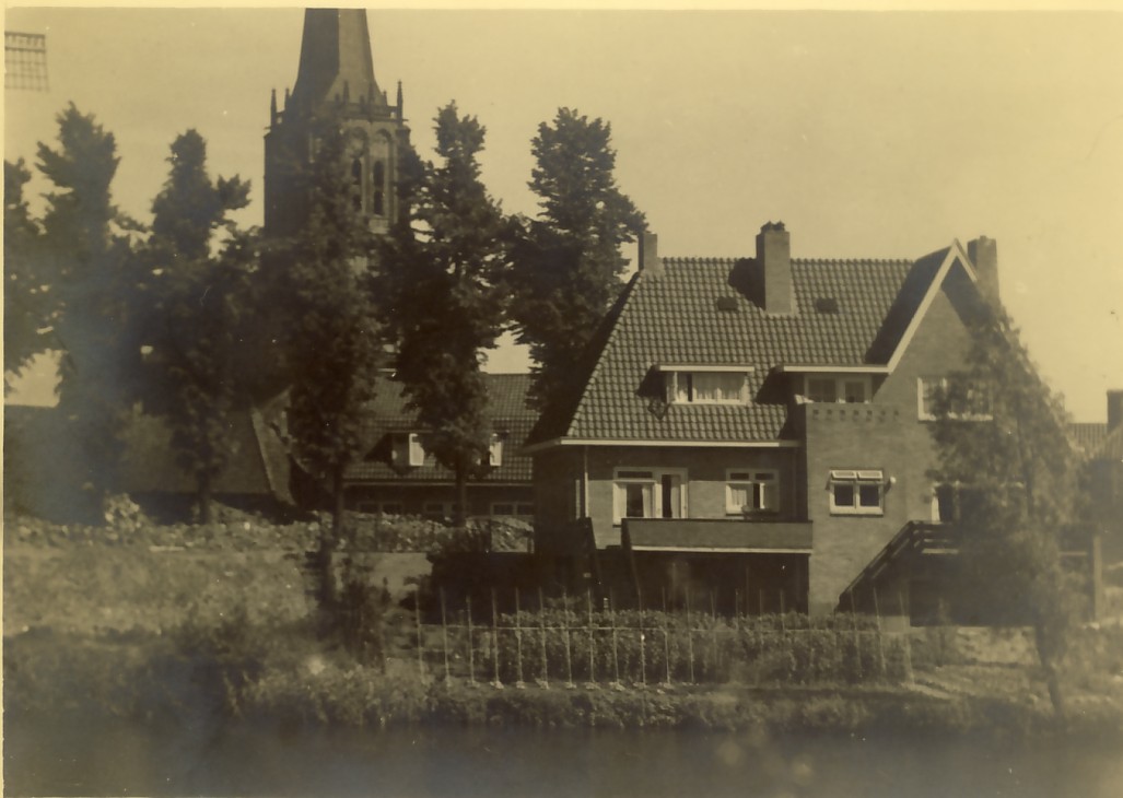Het huis staat aan de Koepoortwal in Doesburg. De foto is gemaakt vanaf de Contre escarpe. De molen is de Walmolen, verwoest in 1945.