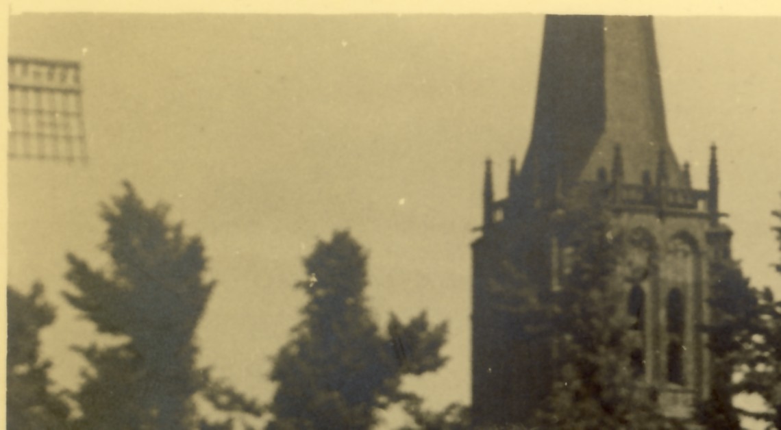 2455g huizen aan plas vóór kerkgebouw, links molen