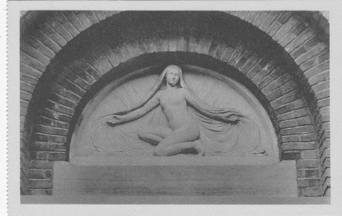 Ansichtkaart relief boven (kerk?) deur afm. 9 x 14 cm