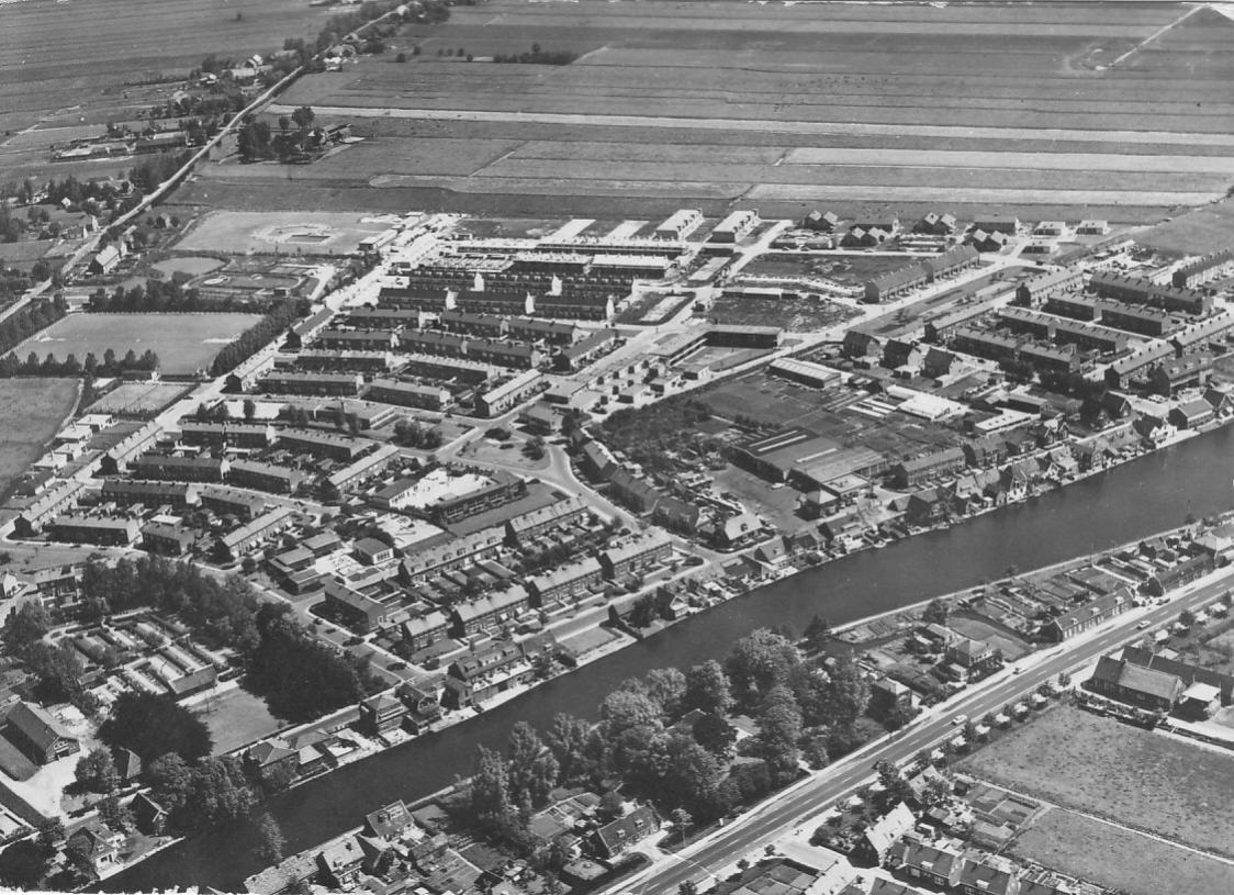 Ansichtkaart luchtfoto woningen aan het water