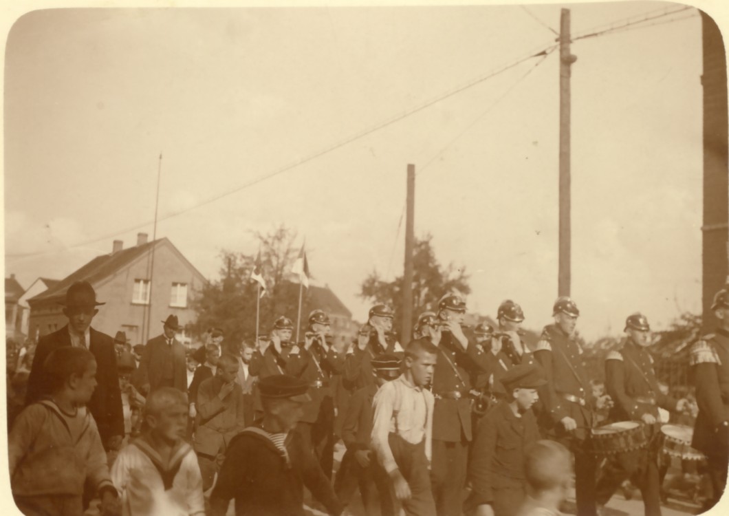 de bovenkant van de uniformmouwen en de jongen in het midden met pet doen mij ook denken aan onze oosterburen