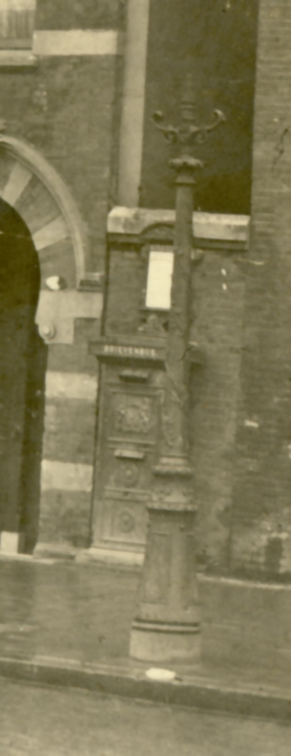 wat opvalt is de lantaarnpaal zonder lantaarn met brede voet; dit model is mij in Rotterdam onbekend; op de paal zijn versieringen aangebracht in de vorm van ranken