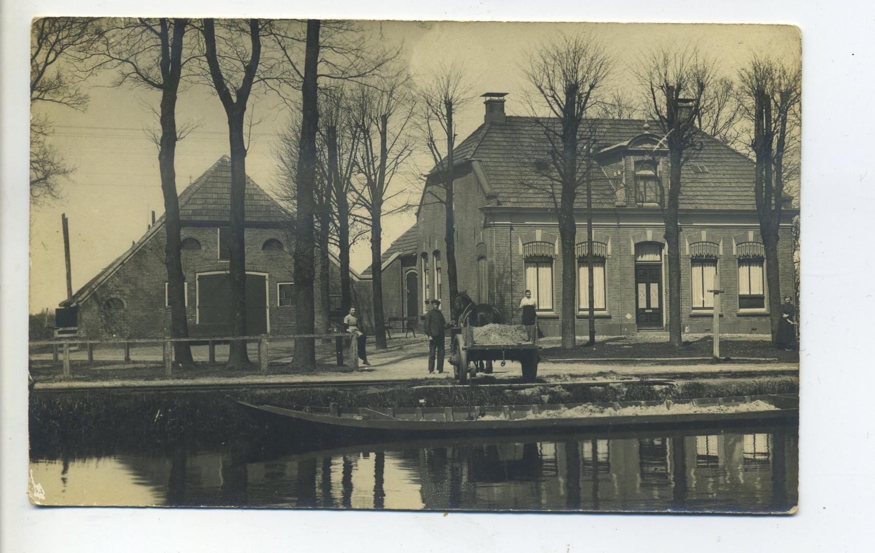 2703g noordelijk Nederland, woning en schuur/stal langs kanaal