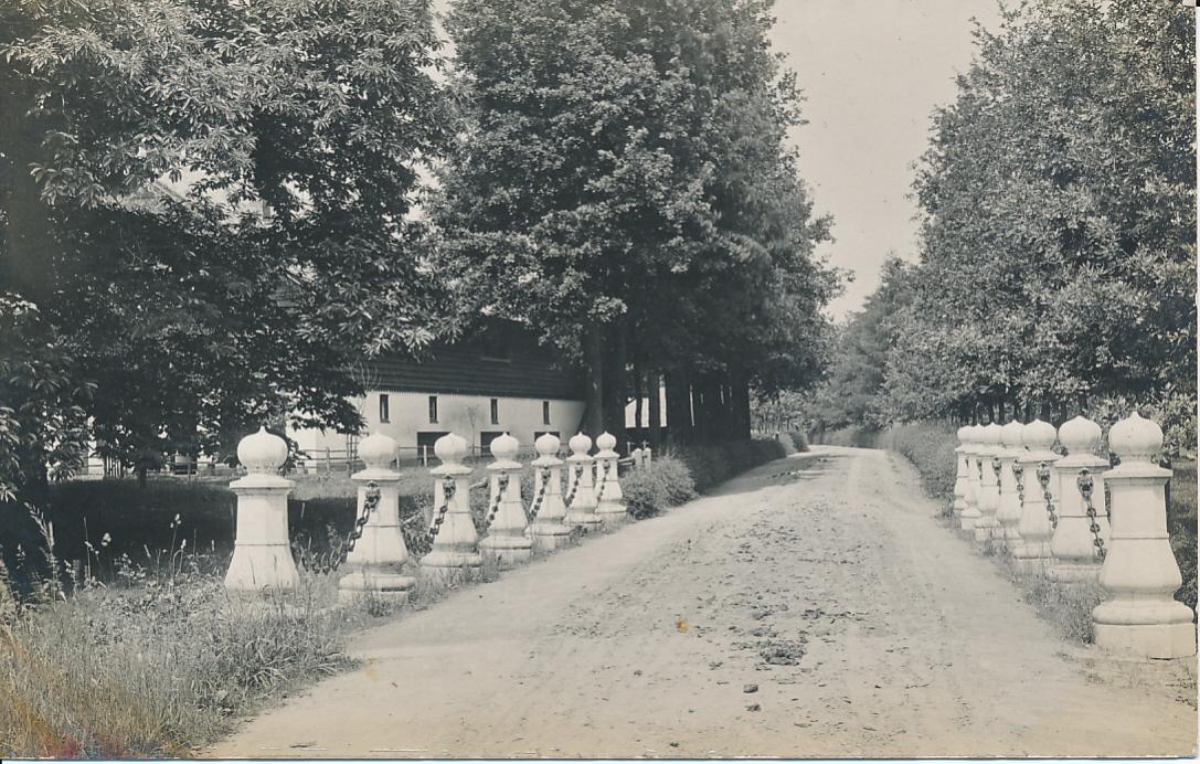 2899g JB oprijlaan met aan weerszijden 7 zuiltjes waartussen kettingen