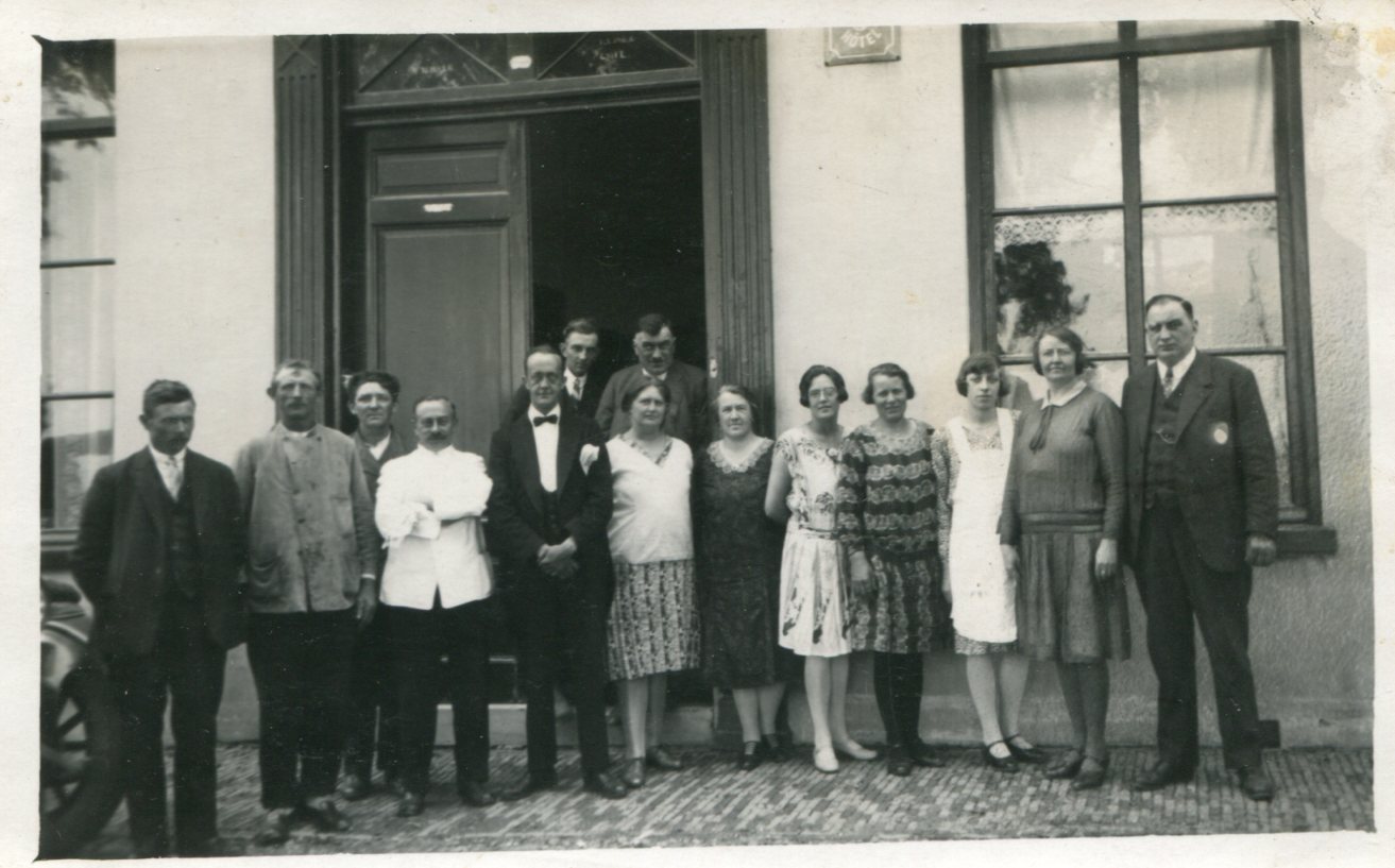 De andere foto, waar dezelfde man (tweede van links), op staat is ongeveer 15 jaar later gemaakt, voor het hotel Veerburg in Kleine Sluis (Anna Paulowna), vermoedelijk samen met andere familieleden.
