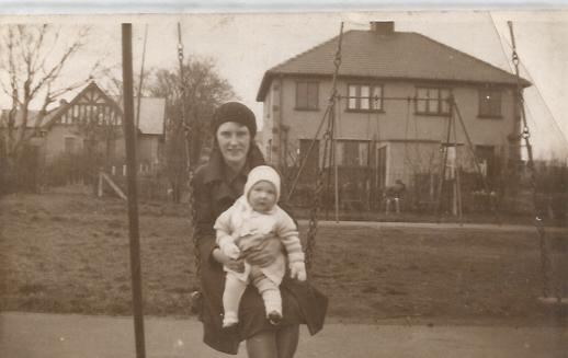 Vrouw met kind zit op een van de schommels. Zulke mutsen zijn daar wel, maar hier niet gebruikelijk. In die streken dragen mensen sowieso meer mutsen in het winterhalfjaar.