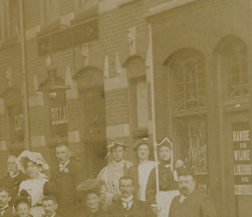 de tekst op het zwarte bord boven de ingang is voor mij onleesbaar