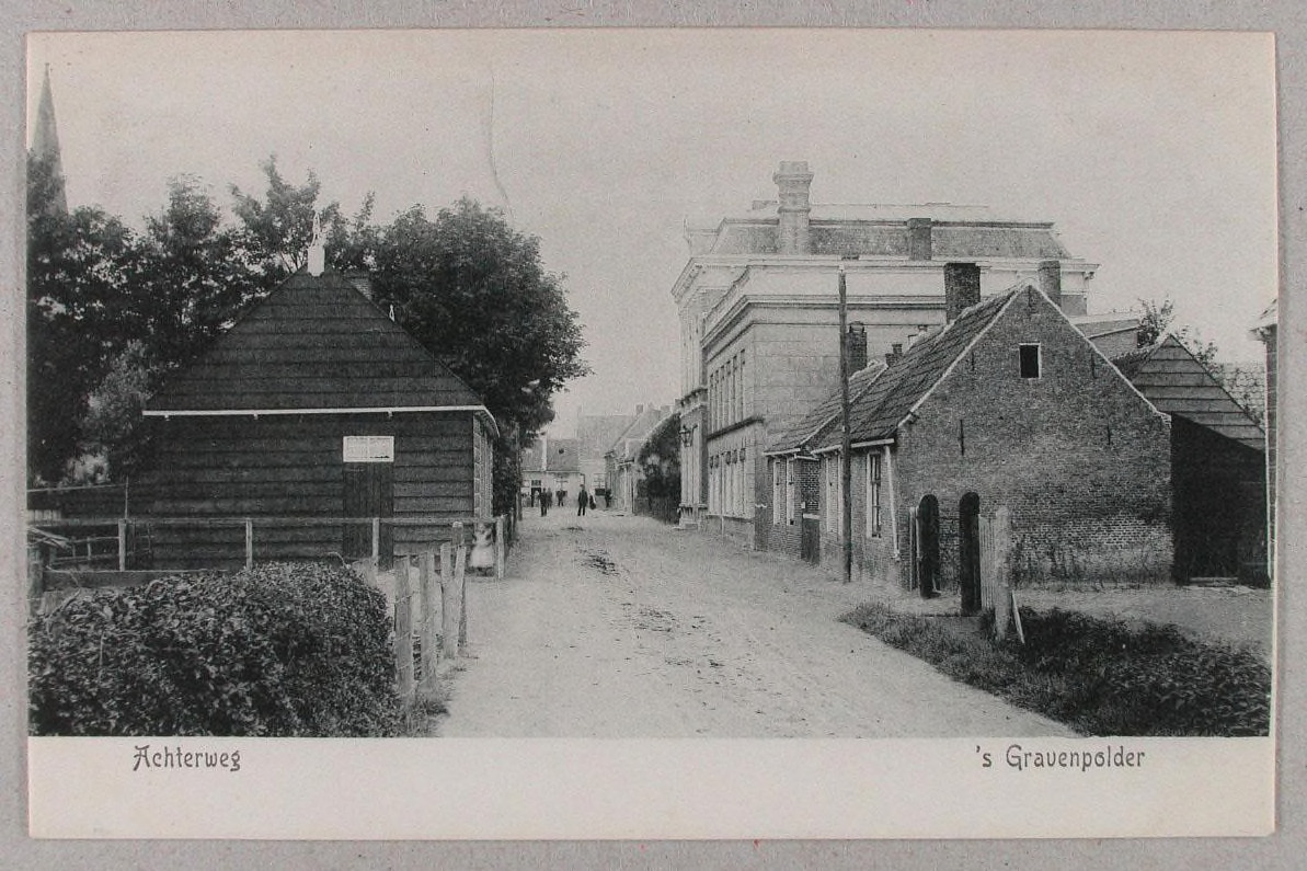 Het kerktorentje links in combinatie met de vrouw met Zuid Bevelandse witte kap rechts heeft me op het juiste spoor gezet. Het gaat hier om 's-Gravenpolder. Zie hieronder een afbeelding van het typische kerktorentje in vooroorlogse toestand.