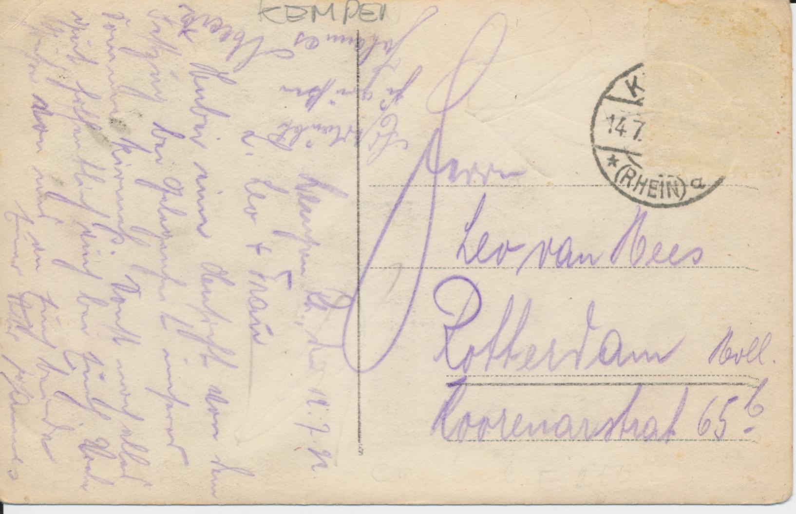 Het poststempel begint met een K... (Rhein) en begint zijn verhaaltje met: Kempen, Rh. 12.7.32, dus ik vermoed dat we hier Kempen zien
