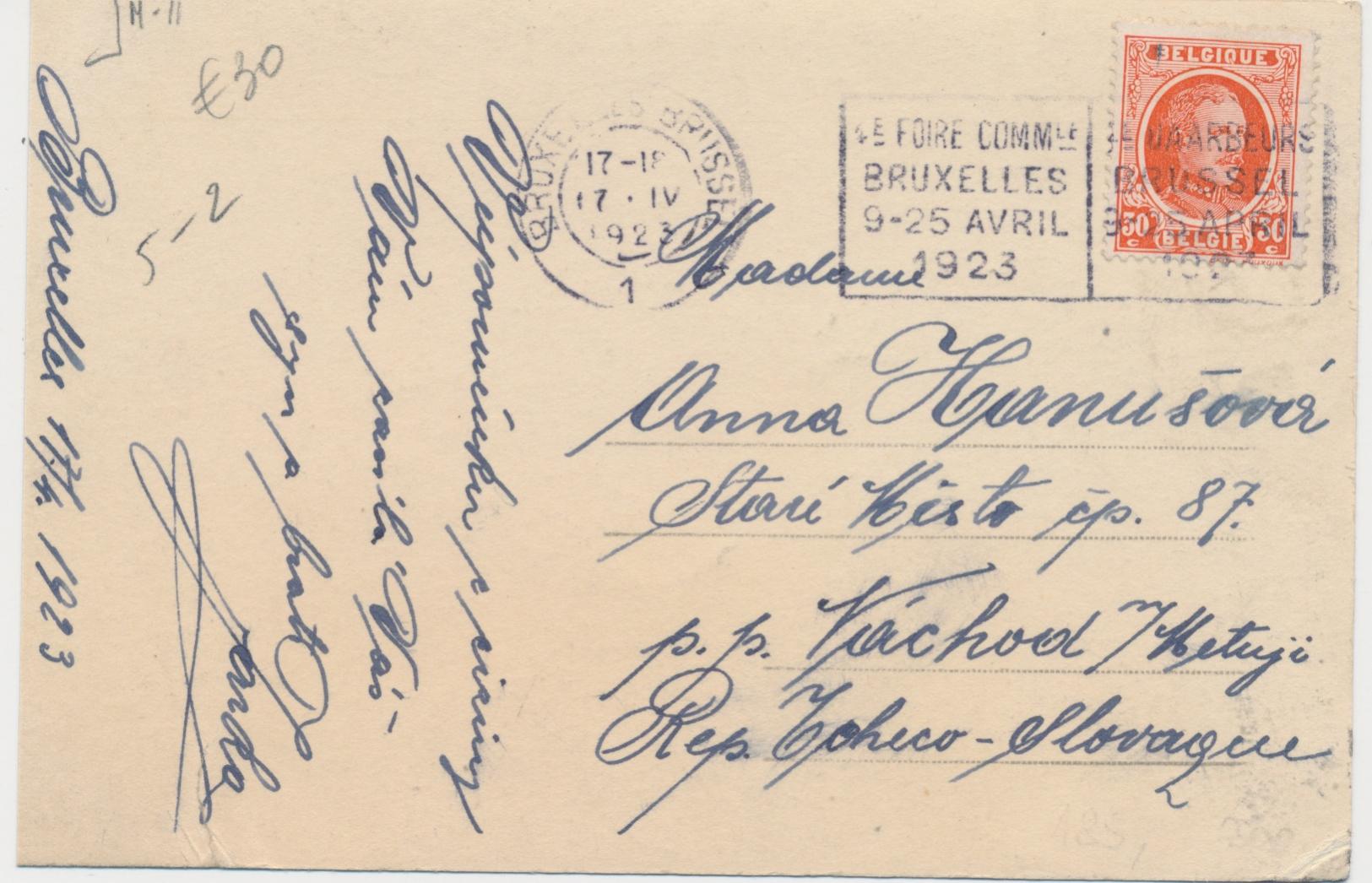de afzender vermeldt ook Bruxelles 17/4.1923