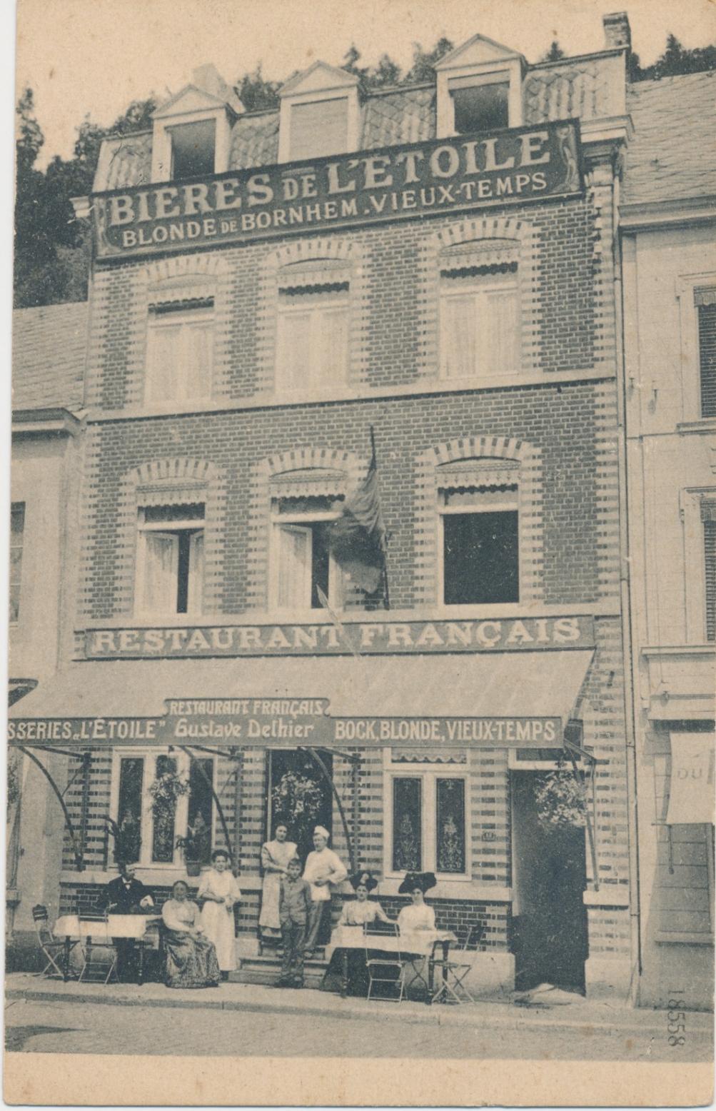 Ik heb de kaart gelokaliseerd, ze werd in de cataloog De Graeve ingeschreven op het nummer 18558. Maar werd overkleefd met de gegevens voor een ander zicht. Door met een zaklamp door het papier te lichten kon ik de oude gegevens lezen, nl Delhier te Spa. Vermoedelijk werd de bestelling geannuleerd. Vandaar dat een andere kaart het zelfde nummer kreeg. Ik heb op Delcampe gezocht en vond het zelfde pand terug zie deze link.