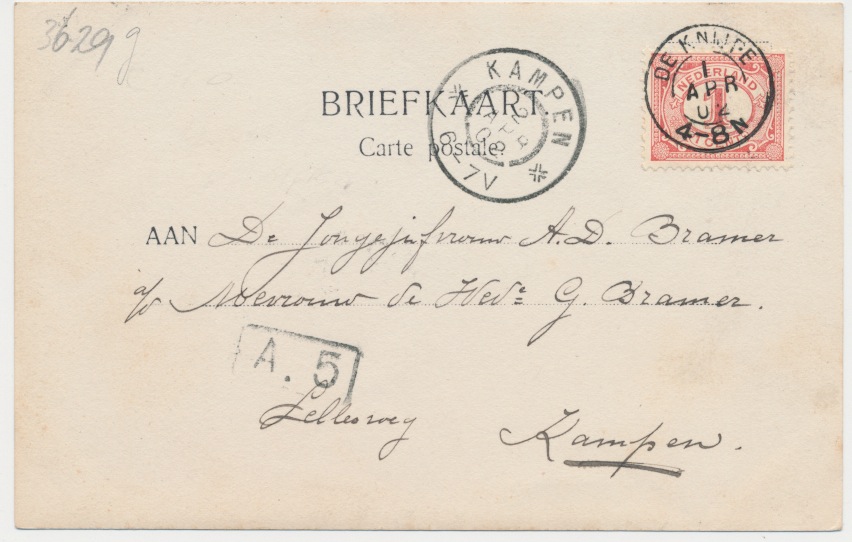 3629g belijnde gelopen fotokaart gestempeld De Knijpe 1902 HJR