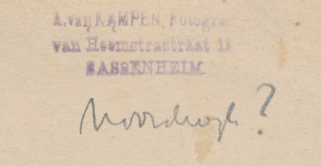 op achterzijde stempeltje van: A. van Kampen, Fotografie uit Sassenheim