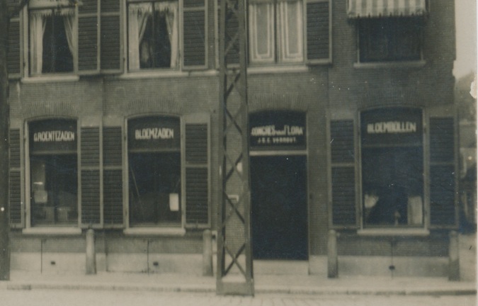 3875g gevelwand met 3 panden waaronder winkel in zaden en bollen JB