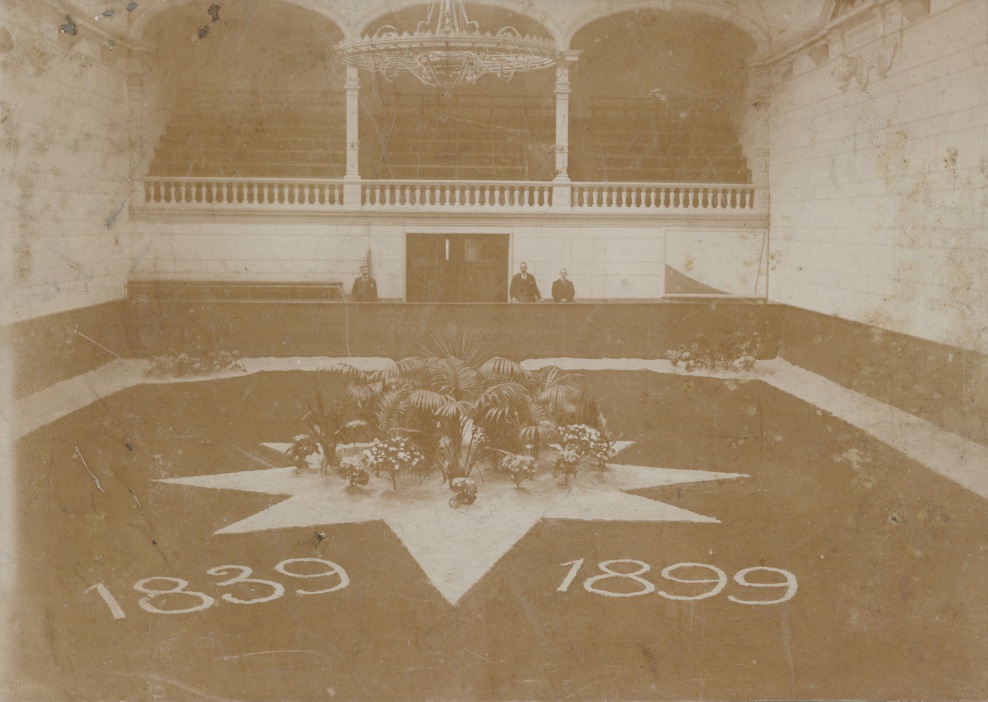 volgens mij het interieur van een manege, dat zijn 60-jarig jubileum viert 1839-1899