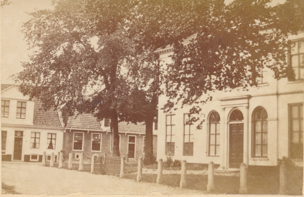 Het witte gebouw op de achtergrond is waarschijnlijk logement "Het wapen van Weststellingwerf", maar dan wel de voorganger van het latere hotel van die naam. Dat hotel werd volgens een krant uit 1899 "voor eenige jaren gebouwd" en is op de meeste andere afbeeldingen van het gemeentehuis te zien. Vermoedelijk is dit de enige afbeelding van de voorganger.