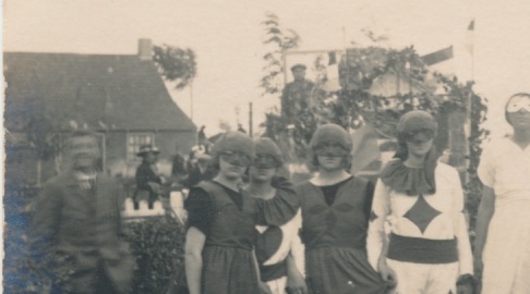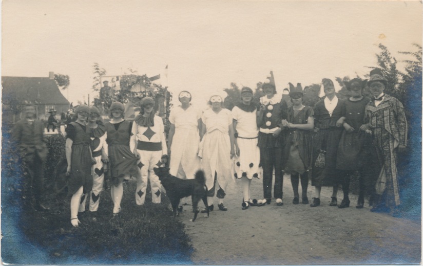 4219g verkleed feestgezelschap op weg JB - retour