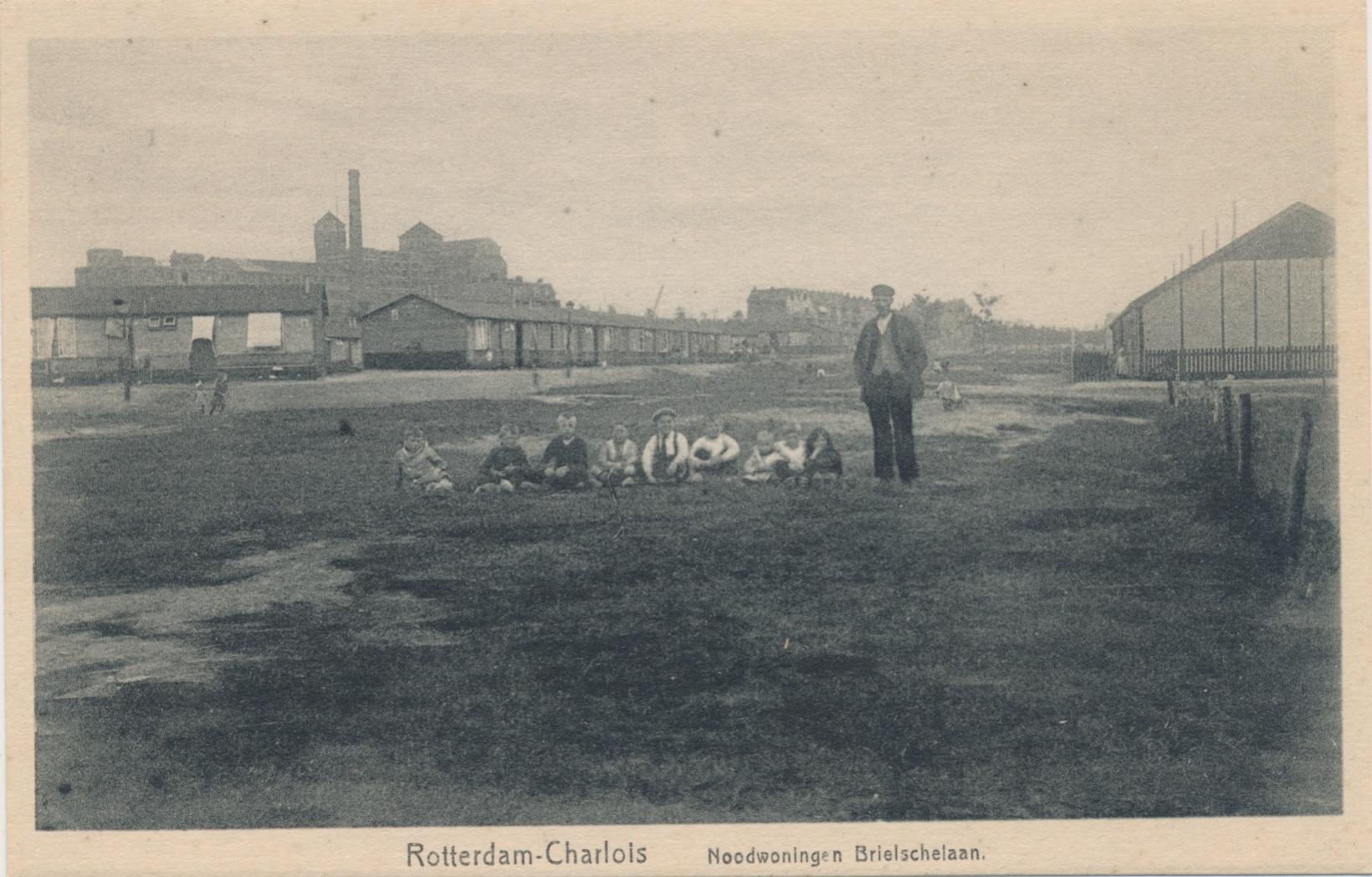 ik zie weliswaar geen overeenkomst met de noodwoningen, een opname uit 1925 (woningen gesloopt in 1928)