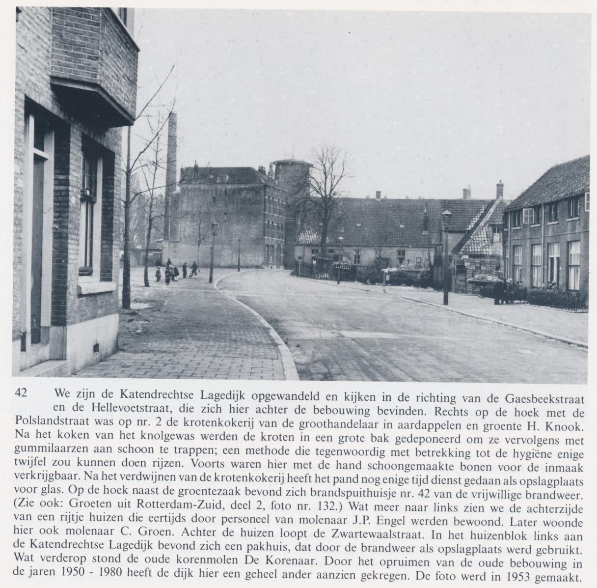 De molen hoek Dordtschestraatweg (nu Hellevoetstraat)- Katendrechtschelagedijk, valt dan buiten beeld.